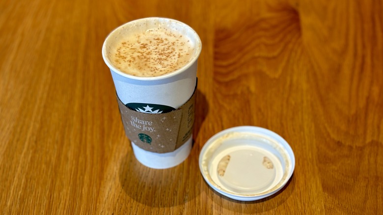 The Pistachio Latte at Starbucks is available in both the hot and iced versions. Although our usual preference leans towards iced coffee, we were curious about how the pistachio sauce would fare in a hot beverage and chose the hot latte for this taste test. We found the hot version more appealing than the cold brew, but it, too, didn't quite stack up to what we were hoping for. The pistachio sauce, milder than we anticipated, offers only a subtle pistachio flavor.