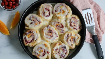 You can also play around with the flavor of the icing in this recipe. If you want to go all-out on the cranberry flavor, then you could swap out the orange juice for cranberry juice (or combine the two) to really up the ante on the tartness. Or, you could use the icing as an opportunity to bring in another fruit flavor by including a touch of peach juice, apple juice, or even pomegranate juice. Now that you know that cinnamon rolls don't have to just be confined to the traditional flavors, you can use the cranberry recipe as a jumping-off point to experiment with different unique variations of the dessert.