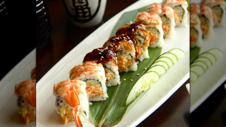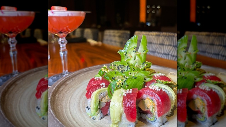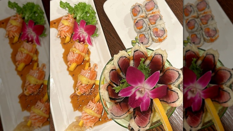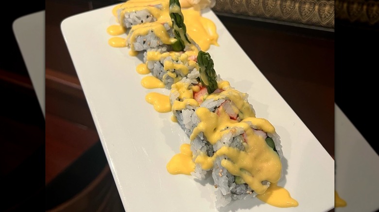 For the sushi aficionados, we'll highlight a couple of crowd favorites. The Hawaii Dream roll that we just mentioned consists of spicy crab, shrimp, avocado, mango, and rice, wrapped in seaweed and topped with eel sauce. If you want a different iteration of spicy, go for the Ice & Fire roll, which combines yellowtail tartare, avocado, pepper tuna, and jalapeno, with grated wasabi and white sturgeon caviar on top.
