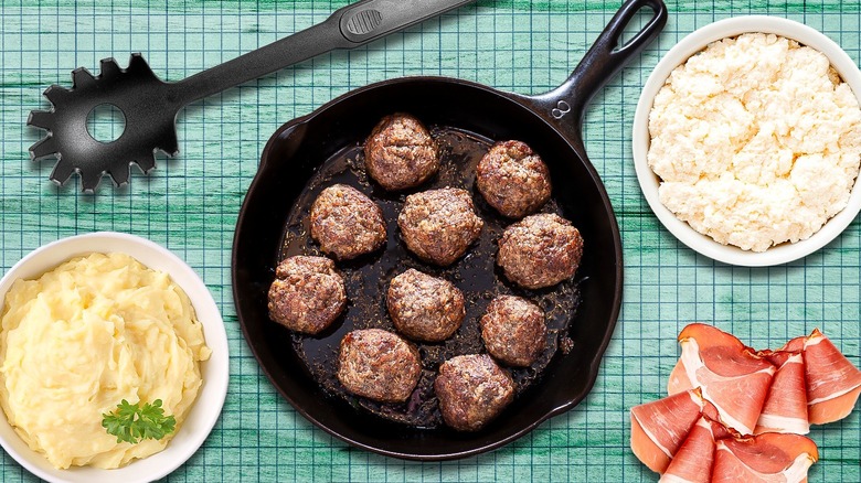 "On top of spaghetti, all covered in cheese..." We'll save the rest of the song for you to ponder, but the food remains at the forefront of our minds: meatballs. These protein-packed spheres made with ground meat, flavorful herbs and veggies, and binders like breadcrumbs and eggs are a quintessential part of a Sunday night pasta dinner, decadent grinder sandwich dripping in melted mozzarella, or a quick dinner idea from the frozen aisle at the grocery store. We love a good meatball ourselves, especially one that is brimming with moisture, flavor, and texture, and strive to find ways to make consistently good ones at home — just like our grandma used to make.