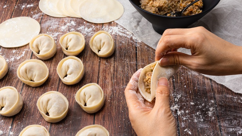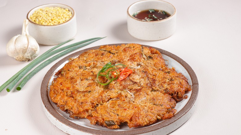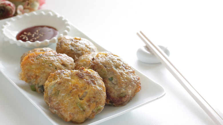 While this dish is mainly thought of as a side, it can also be included in many of the traditional soups and other dishes served for the New Year. The filling includes ground pork or beef — or the two meats blended together — and tofu. Everything is packed together with a blend of vegetables, seasonings, and eggs. Once again, we're here to tell you that this side is as simple as it gets for a high-quality end result. Think of the process as nearly identical to preparing a regular meatball, but with the magic of years of tradition included.