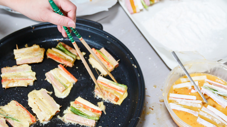 A lesser-known but equally delicious dish that can be served on the Lunar New Year in Korea is ge matsal jeon. This is yet another variation of a Korean fried side dish, but this particular specialty can be thought of as a sort of imitation crab omelet. Although it has jeon in its name, there is no flour-based batter that goes into this unique-yet-simple snack.