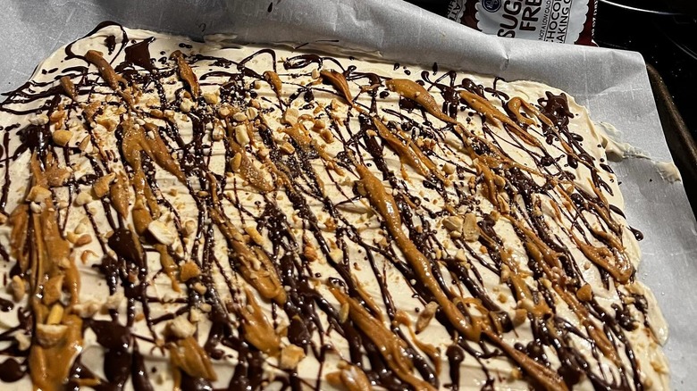 Once you've mastered the process of making this easy bark, you can get creative with toppings. Sprinkle desiccated coconut on top of the sliced banana pieces or coat the tray with drizzles of caramel, agave syrup, or melted chocolate. Cinnamon and pumpkin pie spice can help create unique flavor combinations for each bark-making attempt. Mix protein powder and Greek yogurt for a protein-packed layer if you're looking to meet specific macros requirements, or stick to using fruit, chocolate, and your favorite nut butter for a quick recipe that can be made without much thought.