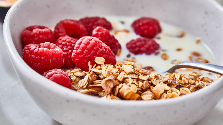 If you have gone to the grocery store, you've probably experienced the sticker shock of looking at a bag of granola. The combination of nuts, seeds, and fruits can cost you upwards of $5 — to even $10 a bag — which might make you think twice about adding it to your morning bowl of Greek yogurt or eating it as a quick snack at your desk. But luckily, the ingredients to make granola are relatively cheap, you may venture to try to customize your own recipe at home.