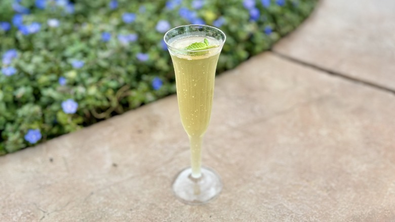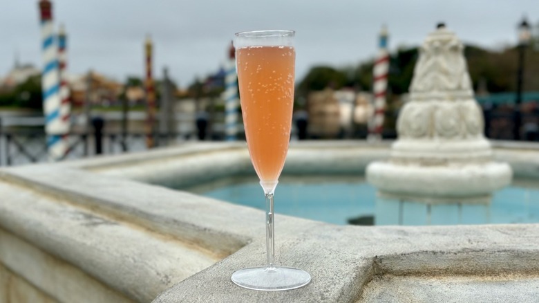 The Sparkling Elderflower Cocktail at L'Arte di Mangiare, located outside the Italy Pavilion at Epcot's festivals, is an intriguing exception to the often-criticized reputation of the food booths in this area. Priced at $15, it drew us in with its elegant look. This cocktail, one of the two new elderflower offerings at the festival, resonates with our love for elderflower liqueur. It's a mix of mint-infused elderflower liqueur, Prosecco, and sparkling blood orange juice, giving it a delicate orange tint.