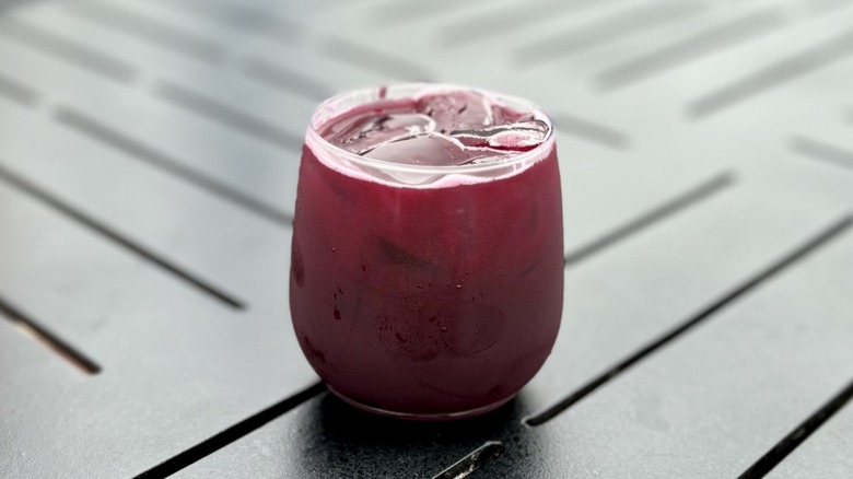Visually striking, the margarita boasts a bright red color and is served in a stemless wine glass, reminiscent of how we enjoy a red sangria. Around the rim, we would have liked to have seen some kind of a sweet or salty rim, but there wasn't one here. With its many ingredients and flavors, we found this to be one of the more memorable drinks on offer. Although we were happy that those beets weren't center stage, the drink's flavor still didn't quite surpass other drinks we tried, even if it was unique and memorable. That said, if you're wanting to try a margarita that will feel different from the norm, this is a great choice.