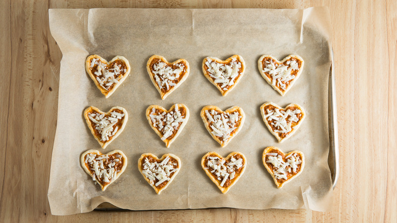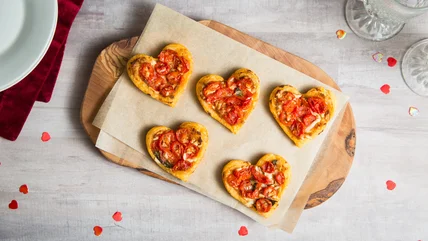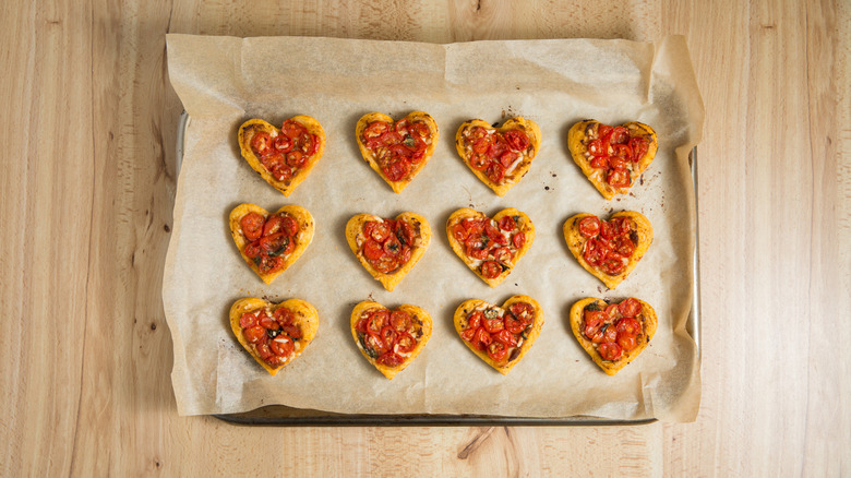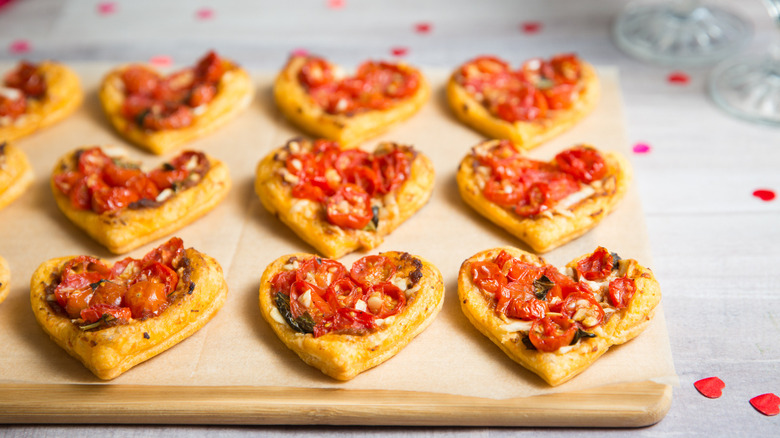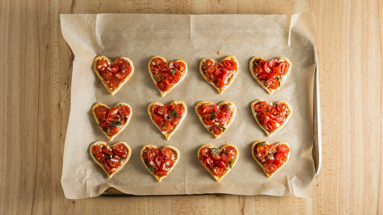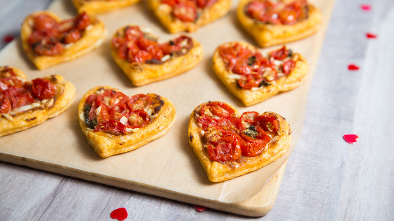 With the most romantic holiday just around the corner, you may be looking for a few special Valentine's Day recipes for a gathering or a cozy dinner for two. These romantic tomato heart tartlets created by recipe developer Michelle Bottalico are a perfect Valentine's Day appetizer. Puff pastry hors d'oeuvres, whether shaped into pinwheels, puffs, square tartlets, or rolls always seem elegant. They can be filled with a variety of delicious ingredients and aren't as complicated as they appear if you use pre-made pastry.