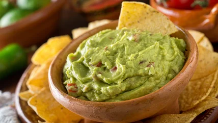 Mayonnaise gets its creamy consistency from an emulsion of oil, water, and eggs, and that creaminess permeates your guacamole when you fold it into the dip. The condiment has a bright and sour flavor profile, but you don't have to worry about the guacamole tasting like a spoonful of mayo because the avocados and other ingredients will still stand out. This creamy version of guacamole makes it the perfect consistency to dip chips in.