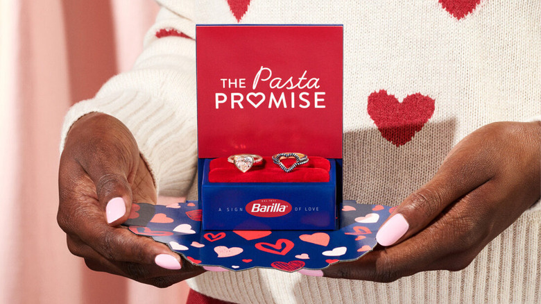 The wide release of Barilla Love is probably all the good news pasta fans need, but the company also has one more offer for Valentine's Day. As part of the pasta's release, it will also be running a sweepstakes called The Pasta Promise Giveaway, where customers can enter to win two stackable, Barilla Love-inspired diamond and ruby-encrusted heart-shaped rings called Ring-a-toni. They are designed by artist Alison Lou, with one being hand painted in Barilla-blue enamel and the second set with a pave 14-carat gold 0.25-carat ruby band and 3.51-carat white diamond bezel heart. So if you want to make this season truly special you can enter on the Barilla Love website from January 23 at 10:00 am EST through February 9 at 11:59 pm ET.
