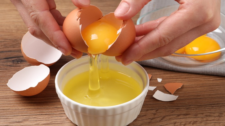 If separating yolks from whites sounds like a daunting task, there are plenty of genius hacks to successfully isolate yolks. The water bottle hack uses an empty plastic water bottle to suck the yolk from the white. A tablespoon measure is another accessible tool to scoop the yolk from the white. If your potato masher has a round, slotted head then you can use it as a strainer for the whites and a barrier for the yolk. This is especially convenient for mashed potatoes as you can use the masher to separate the eggs and mash them into your potatoes.
