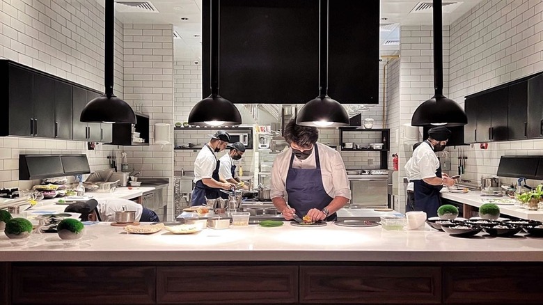 Born as a chef's-table style concept in a room adjacent to the original Trèsind in the One&Only Royal Mirage hotel, Trèsind Studio opened on top of the Nakheel Mall in May 2022 to highlight Himanshu Saini's talent. With seating for just 20 guests, the space is intimate, allowing tables a front-line view into the open kitchen where the chef and his accomplices take center stage. The menu is divided into regions of India with the food in each section reflective of the area, but elevated into exceptional tastes of each source dish. Diners become immersed on a trip through the country while eating, the experience growing more entrancing as each course arrives.