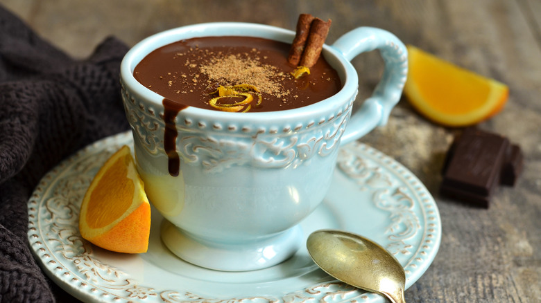 If you're someone who likes a little extra garnishing flair, add a fresh orange slice — or a piece of dried or candied orange — to the hot chocolate to tie everything together.