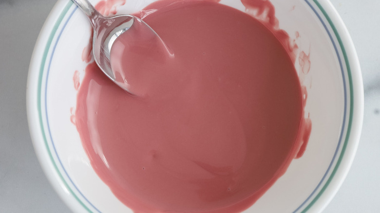 - Put the ruby chocolate in a small bowl and microwave in 15-second increments until completely melted.