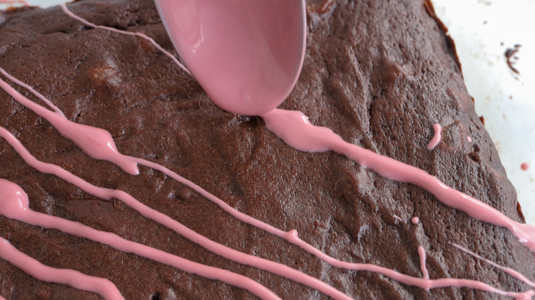 - Use a spoon to drizzle the melted chocolate over the cooled brownies.