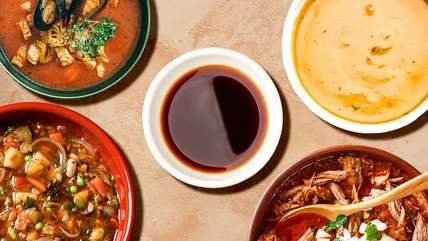 Lighter soups, like vegetable soups, also benefit from adding soy sauce. In Japanese cuisine, light broths often include soy sauce. Adding soy sauce will elevate the soup's flavors in a simple vegetable broth. As for creamier soups, like cream of mushroom or New England clam chowder, use soy sauce judiciously to enhance the earthy or sea flavors and slice through all the fat and creaminess.
