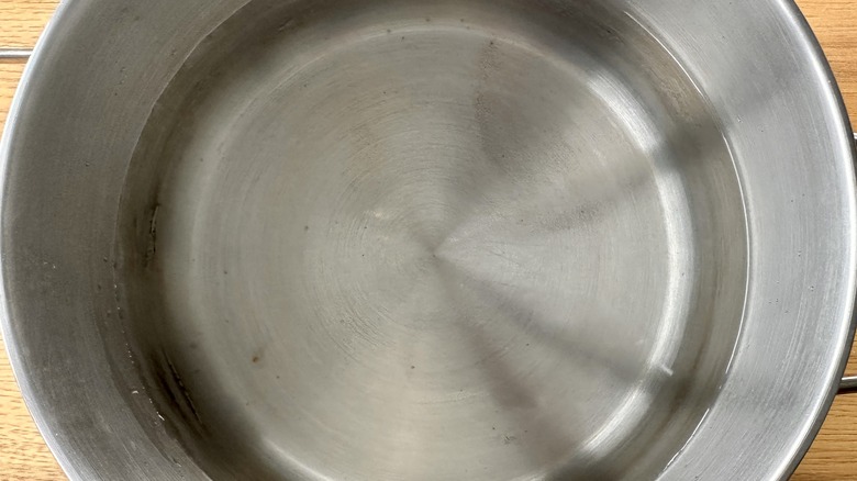 - Meanwhile, fill a large pot with at least 3 inches water and bring to a simmer.