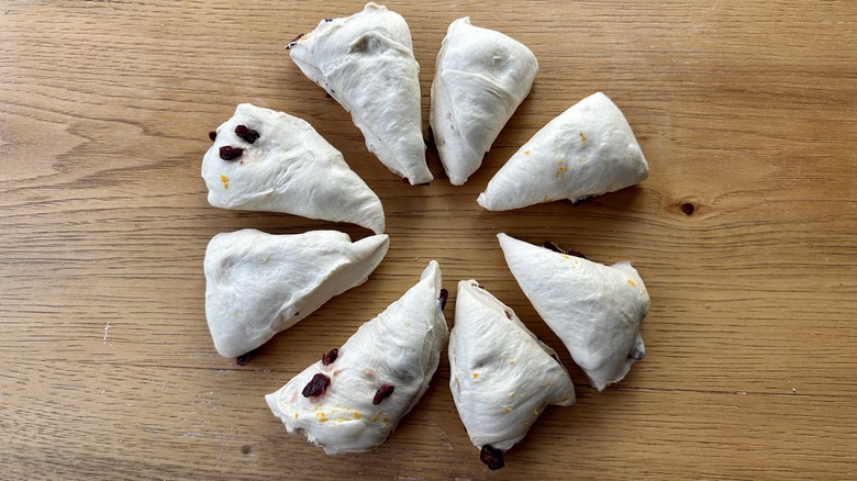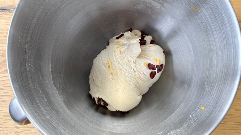 Add cranberries, cinnamon, and orange zest, and knead for 1 more minute to combine.