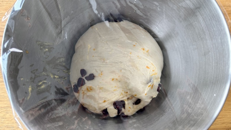 - Add cranberries, cinnamon, and orange zest, and knead for 1 more minute to combine.