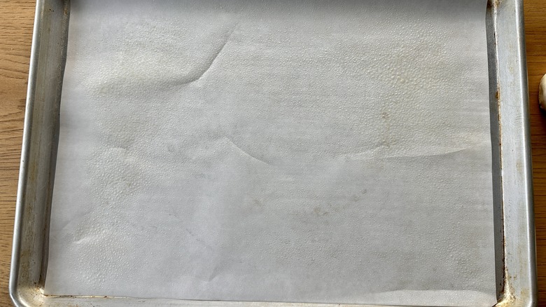- Line a standard baking sheet with parchment paper and coat with cooking spray. Set aside.
