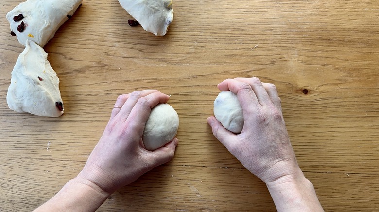 - Roll each dough ball into a 10-inch rope tapered on both ends.