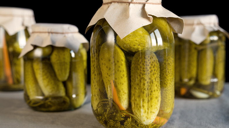 Of course, there's no reason you have to actually include pickles in your sandwich, given that the bread is infused with the flavor already. If you'd just like to add a more subtle briny taste to your lunch, these slices would taste delicious around a green goddess loaded sprouts and avocado, as well as a tuna or pastrami sandwich. So, whether you love your food doused in vinegary flavors or you just want to upgrade your sandwich's slices, you can't go wrong making pickle juice bread.