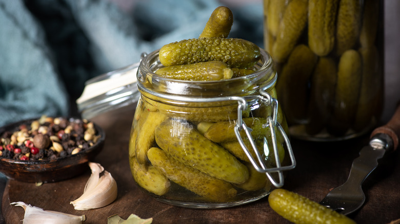 Whether you favor short and stubby gherkins, slender cornichons, or full-bodied dill pickles, these briny and juicy beauties are heaven-sent to complement the crispy texture of puff pastry and its characteristic butteriness. There's something about munching through the exterior golden pastry and into the tender center of a vinegary but sweet pickle that makes the yummiest bite. Better yet, the assembly process is just the same as using mini dogs or chipolatas so it's a simple substitution with no extra legwork. Having said that, there's no harm in spreading a little mustard, sweet chili, or barbecue sauce on the pastry before rolling up your "pickle dogs" to amp up their flavor.
