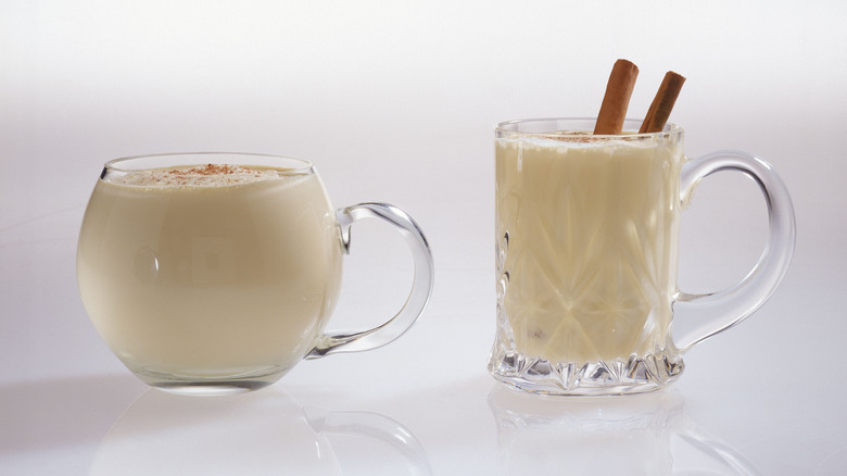 Stewart's preference for including three different types of alcohol when making the creamy cocktail may seem excessive. But make no mistake: This isn't a mere matter of increasing quantity or making your eggnog stronger. Rather, it's about giving the drink more depth by using bourbon, dark rum, and cognac — three distinct spirits that bring their unique flavor profiles to the pot.