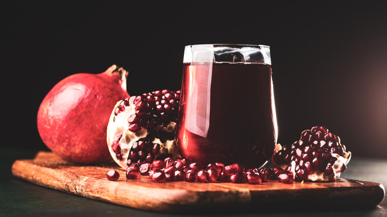 Before serving the drink, Stewart emphasizes the importance of finding beautiful goblets, to aid in the presentation. As this is a variation on a margarita, don't feel obligated to choose a traditional tumbler. Once the goblets have been chosen, rub some lime on their rims and dip them in salt, sugar, or even an edible flower mix. Be sure to select a good-quality pomegranate juice for this, as its flavor really dominates the drink.