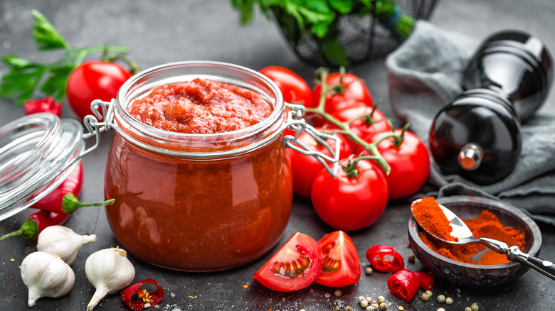 Just because salsa isn't a common addition to mac and cheese, doesn't mean it's not a tasty one. Fresh tomatoes are occasionally included in this dish, as evidenced by Ina Garten's tip of adding the sliced fruits to the top of your casserole. But pasta and tomato-based sauces go way back for good reason, as the acidic nature of marinara and pomodoro provide a welcome balance to the starchy noodles and thick melted cheese. Plus, by using salsa, you can add in a wide variety of flavors, including spice, to an otherwise mild dish — and it's as simple as pouring the condiment out of the jar.