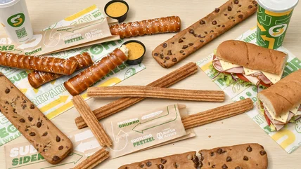 With brief sneak peeks in 2022 and 2023, the Footlong Cookie, described as thick and gooey with loads of chocolate chips, finally takes a permanent slot on nationwide menus at a $5 price point. The Cinnabon Footlong Churro enters at $2 and features the exclusive Makara cinnamon grown in Indonesia, an ingredient that also appears in Cinnabon's beloved cinnamon rolls. The third newbie is the Auntie Anne's Footlong Pretzel for $3, a new incarnation of its classic pretzel, now served with Subway's Honey Mustard for dipping.