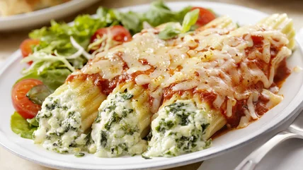 However you choose to dress up your manicotti, you can't go wrong with sun-dried tomatoes and some sauteed aromatics like shallots and garlic; a pinch of spinach never hurt, either. Plus, you can whip up a massive batch of manicotti in one sitting and stash it in the freezer for quick make-ahead meals in the future. Serve this Italian entree as a family-style meal with a big bowl of salad and a tray of garlic bread. Or, for a sophisticated dinner party, pair your sun-dried tomato manicotti with wilted asparagus and a medium-bodied red wine like Cabernet Franc of Dolcetto. You could even bulk it up with shredded rotisserie chicken, a few homemade meatballs, or some ground sausage.