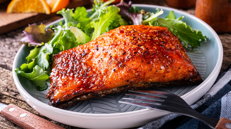 If a flavor test of your fish glaze comes back tasting like you might have overdone it, good. Glazes are used sparingly as a thin final coating on your flavorful fish filet, and as such, only a strong, punchy glaze will get the job done and not get lost in the proverbial sauce. That's why, today, we're deep-diving into how to rev up your fish glaze's flavor with punchy pepper jam. This single ingredient instantly brings balancing sweet-heat to complement and mellow out gamier fish, and simultaneously add bold flavor to milder fish that could benefit from a little intrigue.