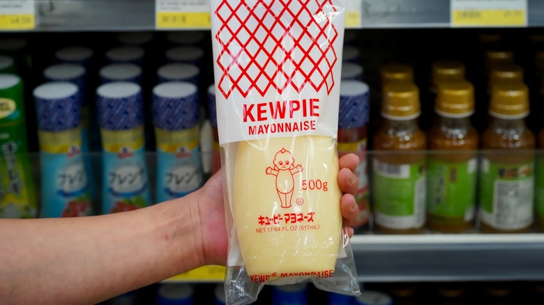 Mayo is the creamy umami finisher that your kimchi fried rice has been crying out for — especially if you use Kewpie mayo. This flavorful condiment is all about the egg yolks, which create a lush, smooth, deep spread with a creamy yellow hue. Kewpie mayo is a tangy, savory mixture of egg yolks, vinegar, vegetable oil, and salt. For reference, "regular" mayo is an emulsion of oil, eggs, lemon juice or vinegar, and seasonings. Cooking with Kewpie mayo also makes a great excuse to swing by your local pan-Asian supermarket or specialty grocery shop. If you don't have time to hit the store, you can also whip up a copycat Kewpie mayo at home with a few staple ingredients.