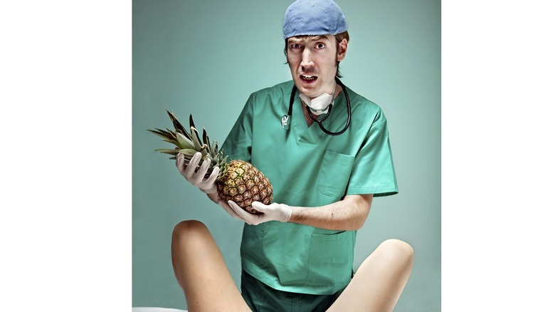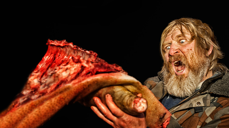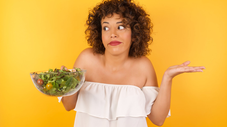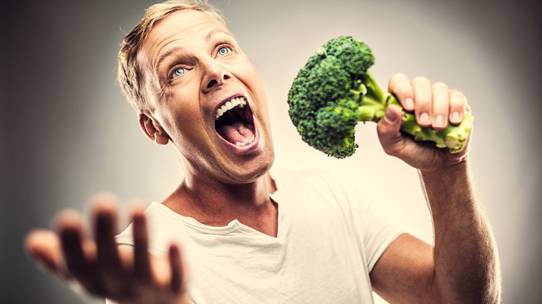 We comb through a lot of food-related stock photos here at Tasting Table, which means we've seen it all, from meme-worthy women laughing alone with salad to women laughing together with salad — the entire gamut! And believe us, those aren't even close to the weirdest photo trends in the stock-o-sphere. It's a great, big, visual library of every concept that a photographer or creative director can think up, all of it aimed at cornering every possible image query. Half of our research for this article was simply generating weird word combos to see if we could be more original than reality with stock-photo search terms like "robot cauliflower fight." Reader, we lost that battle.
