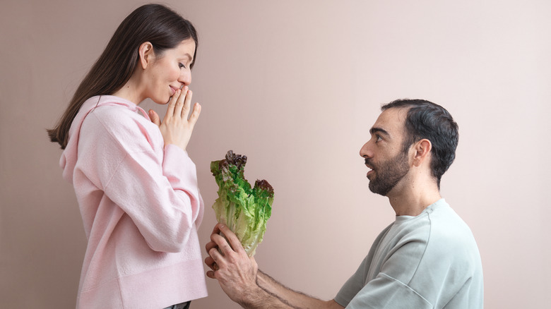 When you think about it, all vegetable life is full of organic carbon-based compounds, and its carbon atoms may someday end up being subjected to immense pressures deep in the earth, so in a certain sense, giving your partner a head of lettuce says, "One day, billions of years from now, this will be a diamond, and my love for you will endure even unto then."