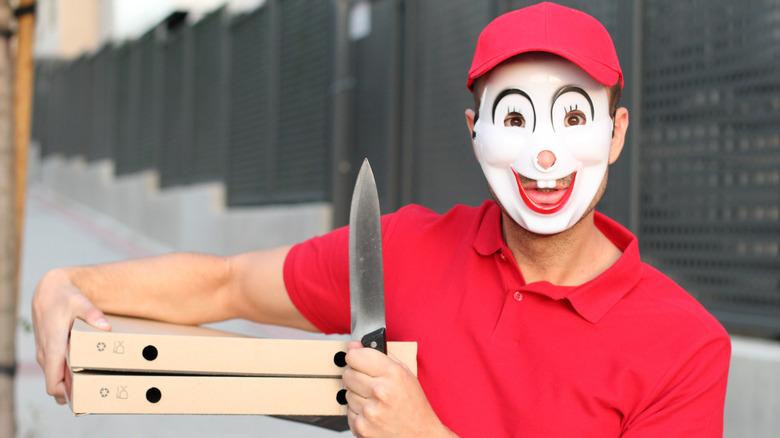 Pizzahead is back! Looking for a way to simultaneously shock and confuse pizza fans? A novelty severed head with marinara-squirting action will startle all two of your friends ... although Johnny Boxdome seems just as befuddled as they are by the entire affair. Surely they saw the head in the open box from afar? Maybe everyone's just upset because all they have to eat is a head, but they can't stop thinking about pizza now that their hopes are up. They should probably order a real pie as a backup — delivered by a knife-wielding clown?