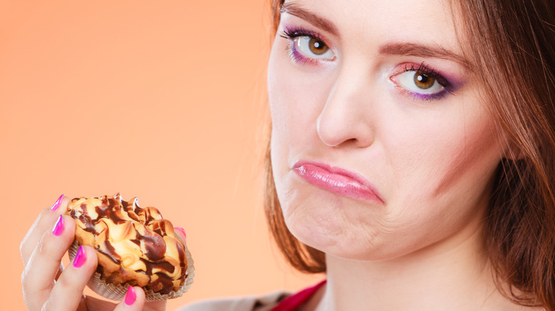 There are so many stock photos of women who appear sad to be eating cupcakes, it beggars accounting. Look, lady: have the cupcake, don't have the cupcake ... just commit to your decision. One cupcake won't ruin your life, but regretting the cupcake will ruin the enjoyment of eating it. In essence, if you can't eat your cake and have it too, be resolute about the eating part.