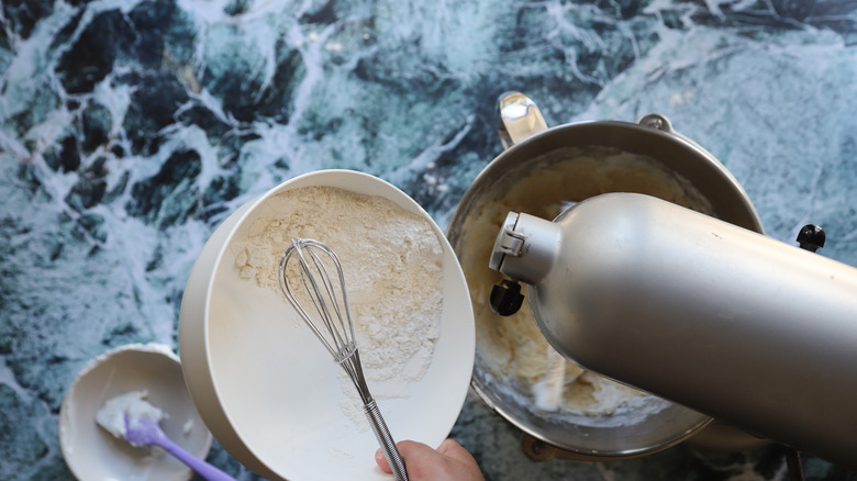 - Add the eggs one at a time, scraping the bowl between additions.
