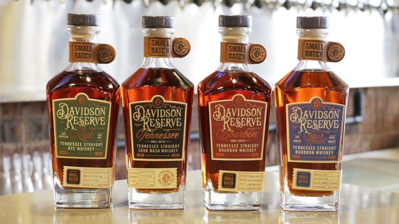 While the product line from Rollins is limited, the same can't be said for Davidson Reserve. The brand's lineup includes five whiskeys (as of January 2024) that cater to a broad range of tastes. This includes a classic Tennessee whiskey, a few bourbons, and a rye whiskey. Perhaps the most interesting is its Four Grain expression, which includes corn, rye, wheat, and barley.