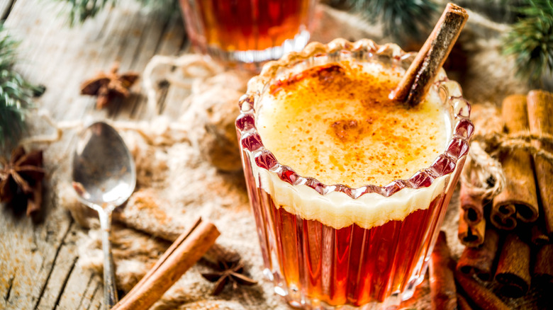 Unlike rum, which is often darkly sweet, whiskey tends to be warm and smoky. Whether you opt for a malty scotch, a caramel bourbon, or an intricately spicy rye, whiskey brings a depth of flavor that perfectly complements the drink's richness. Each soul-soothing sip is a cozy embrace of the alcohol's fiery, hearty notes, the butter's creamy sweetness, and the spices' warming essence. Depending on which type of whiskey you use, you may also detect hints of vanilla, chocolate, oak, toffee, floral, or even fruit.