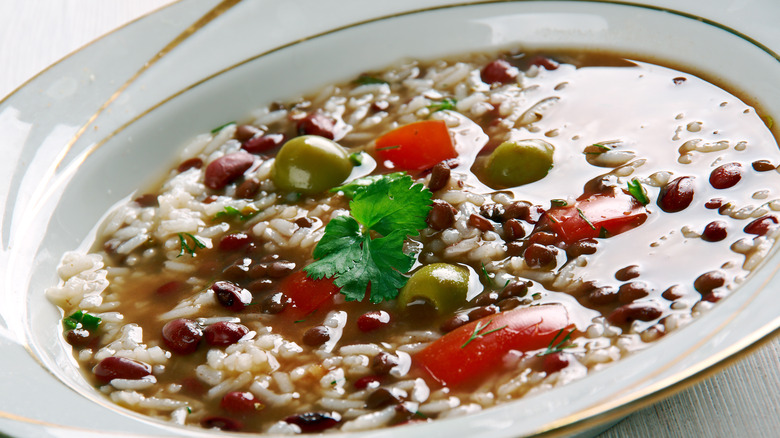 Asopao is a soup that sometimes comes out more like a stew, and is usually made with a brothy rice base seasoned with sofrito, tomato sauce, peppers, and herbs, and filled with any number of proteins or vegetables. While asopao didn't show up on restaurant menus until the 1800s, the recipe itself dates back to Spanish colonization and the African slave trade. Puerto Rican heritage and culinary traditions are often derived from a mix of Spanish and African influences. As such, local food historians assert that asopao is a cross between saffron rice and gumbo, using the local Caribbean bounty to supply its own flavors and ingredients.