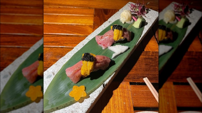 The food at Nikutei Futago is plated with exquisite care and expertise. Each item is as appealing to the eyes as it is to the palate, a sometimes underrated element to consider when choosing where to enjoy a meal. The restaurant implores its guests to surrender their senses, and you'll immediately understand what that means upon walking through its doors. After sampling an array of starters, try the famed Wagyu tasting course. At a whopping $360 per person, this won't be a meal to quickly devour on a lunch break. Rather, this will be a culinary experience to savor and one that you're sure to look back on fondly for a lifetime. Nikutei Futago is open for dinner Tuesday through Thursday and both lunch and dinner on Friday, Saturday, and Sunday.