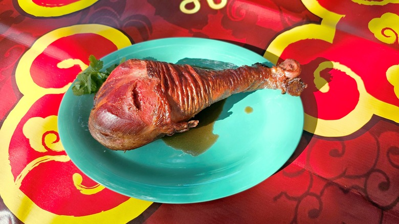 The leg isn't cloyingly sweet, though. Unlike other barbecue sauces that might be syrupy thanks to the large amounts of brown sugar or ketchup, Aguayo tells us that it's the "umami flavors" that make the char siu stand out. She says adding those flavors to the smokiness of the turkey leg "adds a different dimension" to the dish. "It's not just your normal char siu flavor," she continues, "it truly brings out that barbecue feel to it. Our turkey legs have a strong smoky flavor, plus the char siu, just kind of was a hit."