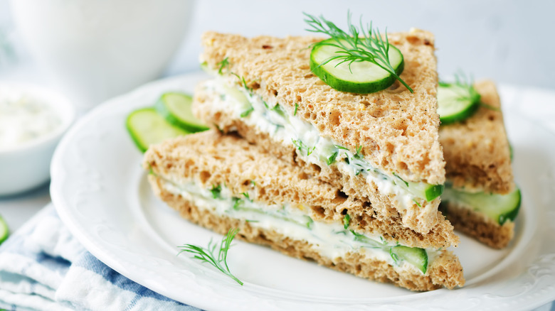 As far as pairing ingredients go, your choices are as versatile as can be. Anything that you typically use in a regular sandwich would work, but one classic companion for cream cheese that never fails to delight is salmon. A few smoked salmon slices, leafy greens, onions, and a spread of citrusy cream cheese make a very tasty combination. Keeping things simpler, you can skip the meat or fish and just stick to cucumber sandwiches with fresh herbs and seasonings. This breezy light take is perfect for whenever you need something to fill the belly, but are not in the mood to take on all heavier savory flavors. It works great as a light lunch or even a brunchtime treat when served alongside tea, coffee, mimosas, or anything else your heart desires.