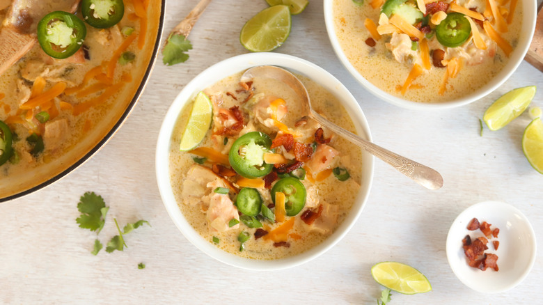 If you like jalapeño poppers in appetizer form, then you'll love this jalapeño popper white chicken chili, which is loaded with creamy, cheesy flavors.