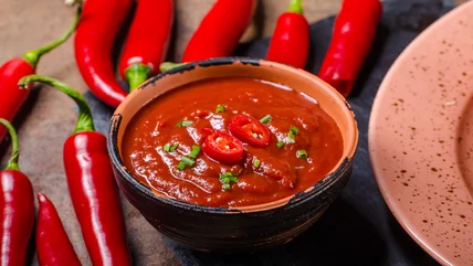 Brown and white sugars will temper the heat from the red jalapeños, which is what gives sriracha its bright red color and spice levels. Brown sugar contains molasses which gives it a richer flavor and color, while white sugar doesn't have molasses and is sweeter; this combination promises a blend of flavors without an overbearing sweetness. To try this balance of sugars in hot sauce, check out our homemade sriracha recipe from Tasting Table recipe developer Tanika Douglas. This recipe uses both brown and white sugars with red jalapeños, salt, vinegar, garlic cloves, and water.