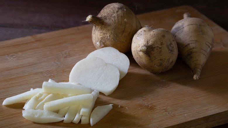 Crunchy, juicy, refreshing, and mildly sweet, jicama is a root vegetable that doesn't get the recognition it deserves. Not only is it nutritious, providing plenty of fiber and vitamin C, but you can also enjoy eating it in a variety of ways. Peel and chop jicama into strips and eat the pieces raw with your favorite dip for a healthier snack, or add them to your salads and fresh spring rolls to give them an extra delectable crunch. Pickle them to have some crispy, tangy filling for your sandwiches. Boil and mash them like you would the similarly starchy potato. Turn them into fries, too, by boiling peeled jicama strips, drying them, and then flavoring them with your favorite seasonings before placing them in the air fryer.