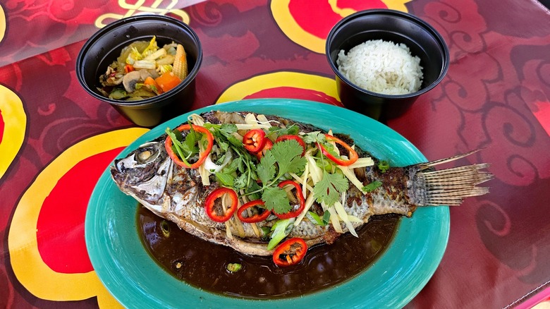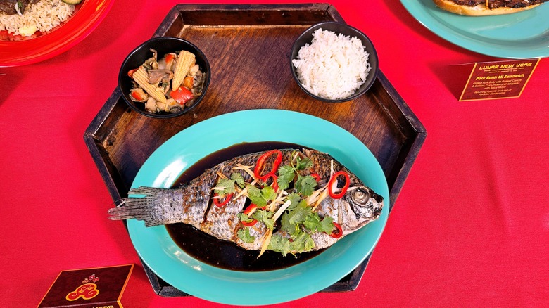 But the Disney chefs also pay close attention to what's worked in the past, and so they always offer several tried-and-true options that are fan favorites. The whole fish is one such dish. Yes, we said a whole fish. Available at Paradise Garden Grill, this dish is a classic Asian entree that will easily serve two or more people. While the food team brought the whole fish back again this year, they decided to return this traditional Lunar New Year meal to its roots and steam it rather than deep-fry it. Even though that crispy outer shell is missing, this fish is still something to behold.