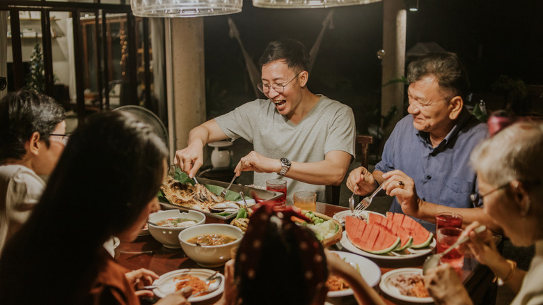 But how it's eaten is more important than how it's presented. The fish is served whole, which means that you can easily take pieces off the top at first. But once you get to the bone, whatever you do, don't flip the fish. "Never turn over the fish," Nguyen warns. "Once you turn over the fish, it's like turning over your luck. So, we would take the bones out and then eat the bottom half with never turning the fish."