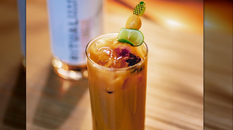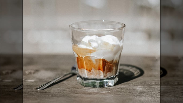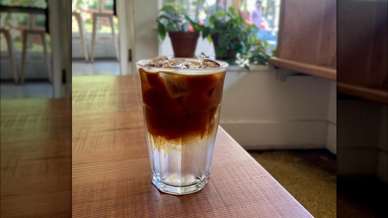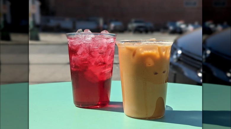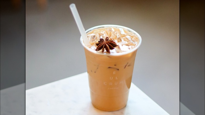 If you're heading to Fulcrum for iced coffee, you should definitely try one of their creative signature seasonal drinks. They always have several running seasonal options, around half of which are iced. Each signature drink is entirely different and relies on a wide variety of ingredients and flavor profiles to make it pop — their website even offers pictures of the aesthetic offerings. A few signature seasonal examples include their recent Boom Chaga Latte, an immunity-boosting coffee that features monk fruit, chaga mushrooms, and cacao, along with their locally roasted espresso. The seasonal 'Pretty in pink' is a beetroot latte made with rosewater — it's even topped with jasmine flowers.
